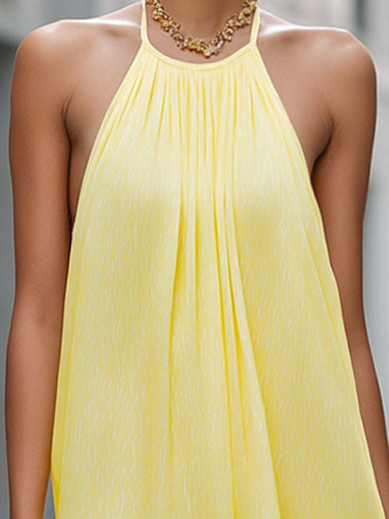 Pleated Halter Neck Flowing Maxi Dress