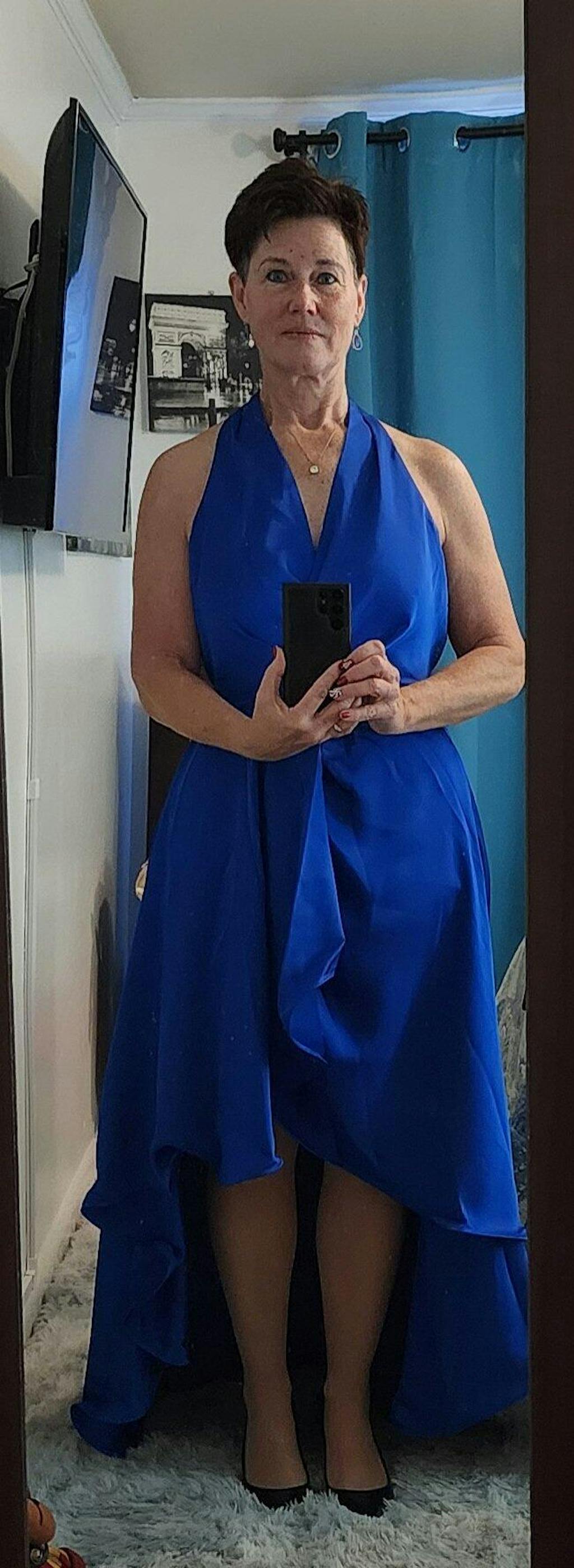 A self-tie sash at the waist defines your shape, and the rich navy hue lends a commanding presence perfect for upscale evenings or formal receptions. This dress combines poise and fluidity—ideal for the woman who commands attention with elegance.