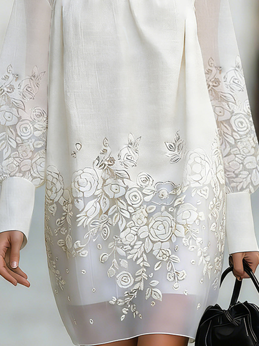 Elegant Shift Dress With Sheer Sleeves