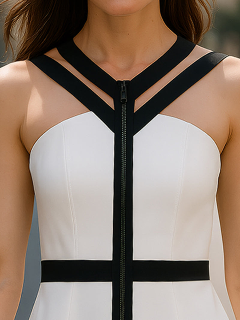 Mooyius presents the Black and White Diagonal Colorblock T-shirt to elevate your sophisticated look. This stylish t-shirt features a striking diagonal black and white colorblock design, blending contemporary aesthetics with timeless appeal. Made from soft, high-quality knit fabric, it offers both comfort and sophistication.