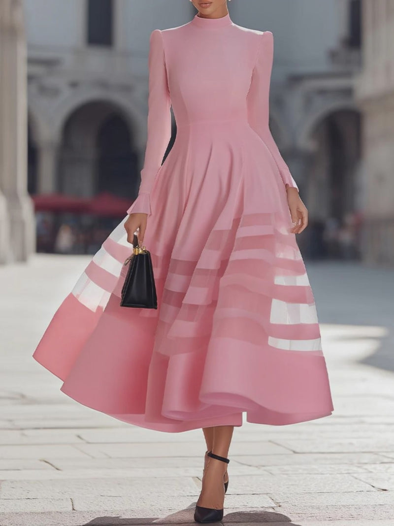 Beige Turtleneck Bodycon Dress with Black Belt Accent