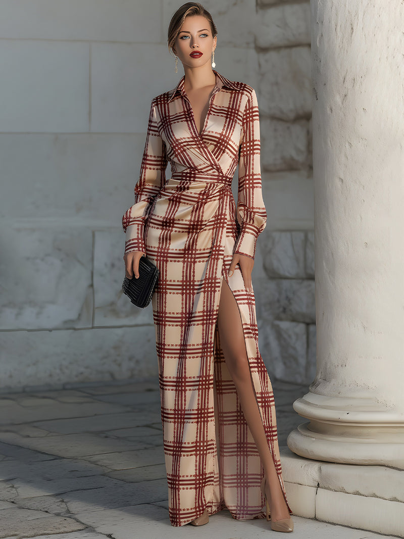 Quare-Neck Long Sleeve Evening Gown With Embellished Side Panels