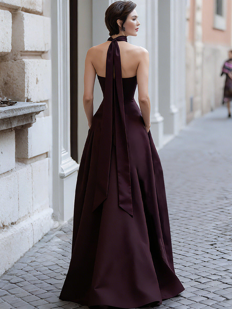Velvet Cowl-Neck Sleeveless A-Line Evening Gown