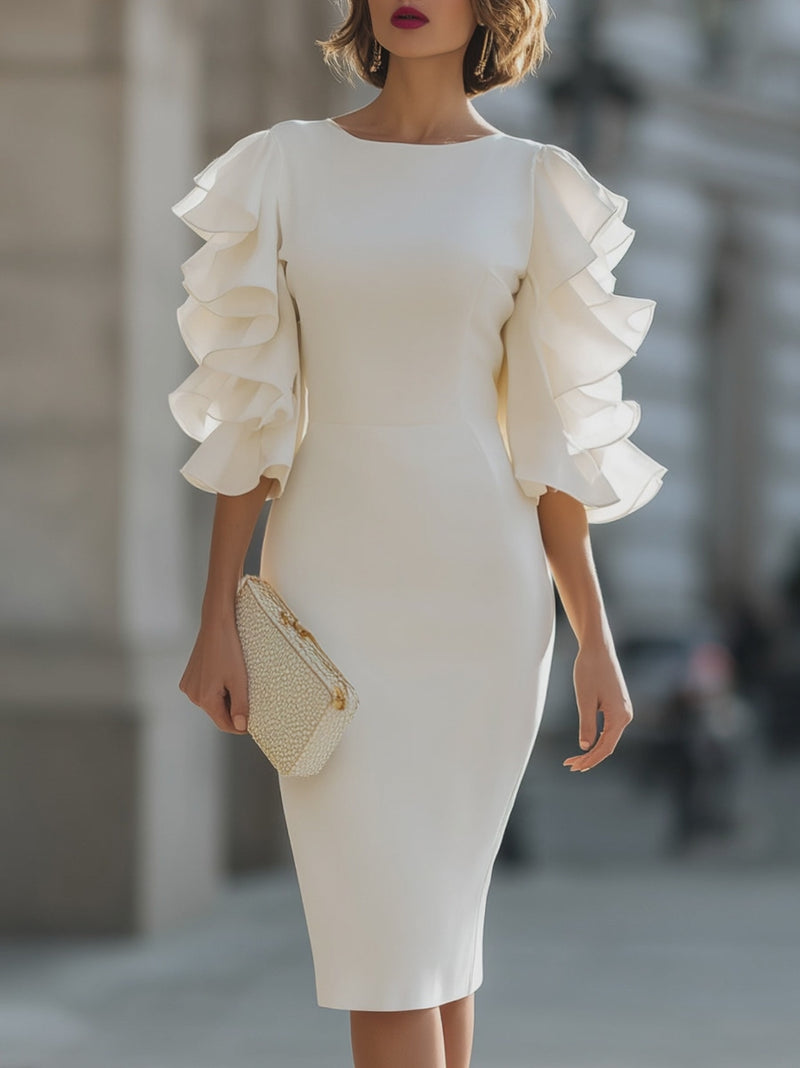 White Dress With Ruffled Sheer Sleeves