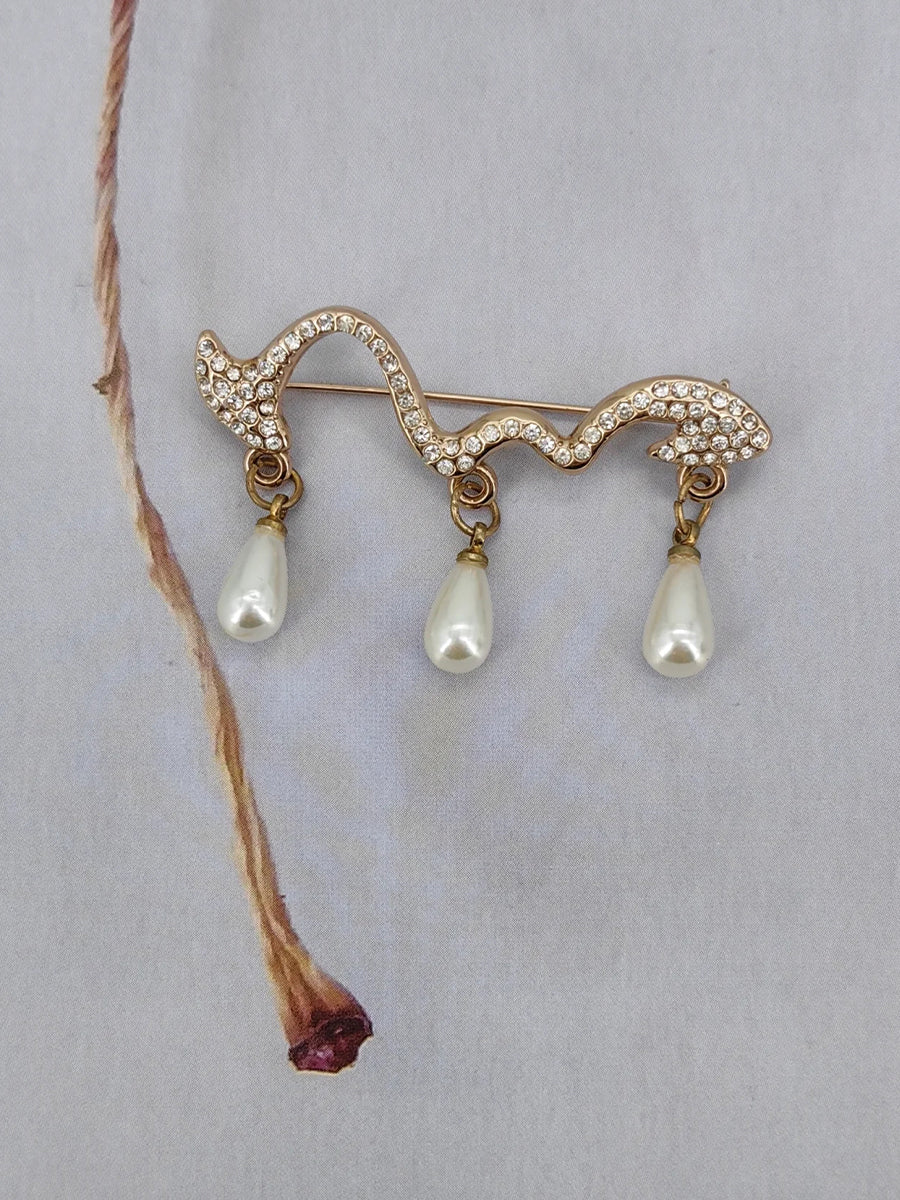 A statement of refined elegance, this Mooyius sculpted curve brooch is designed for women who appreciate artistic structure blended with graceful movement. The fluid silhouette mimics a gentle wave, adorned with shimmering pavé rhinestones that illuminate the piece with subtle radiance. From its base, three pearl drops are suspended in perfect balance—each one adding a soft, feminine sway that enhances its elevated charm.