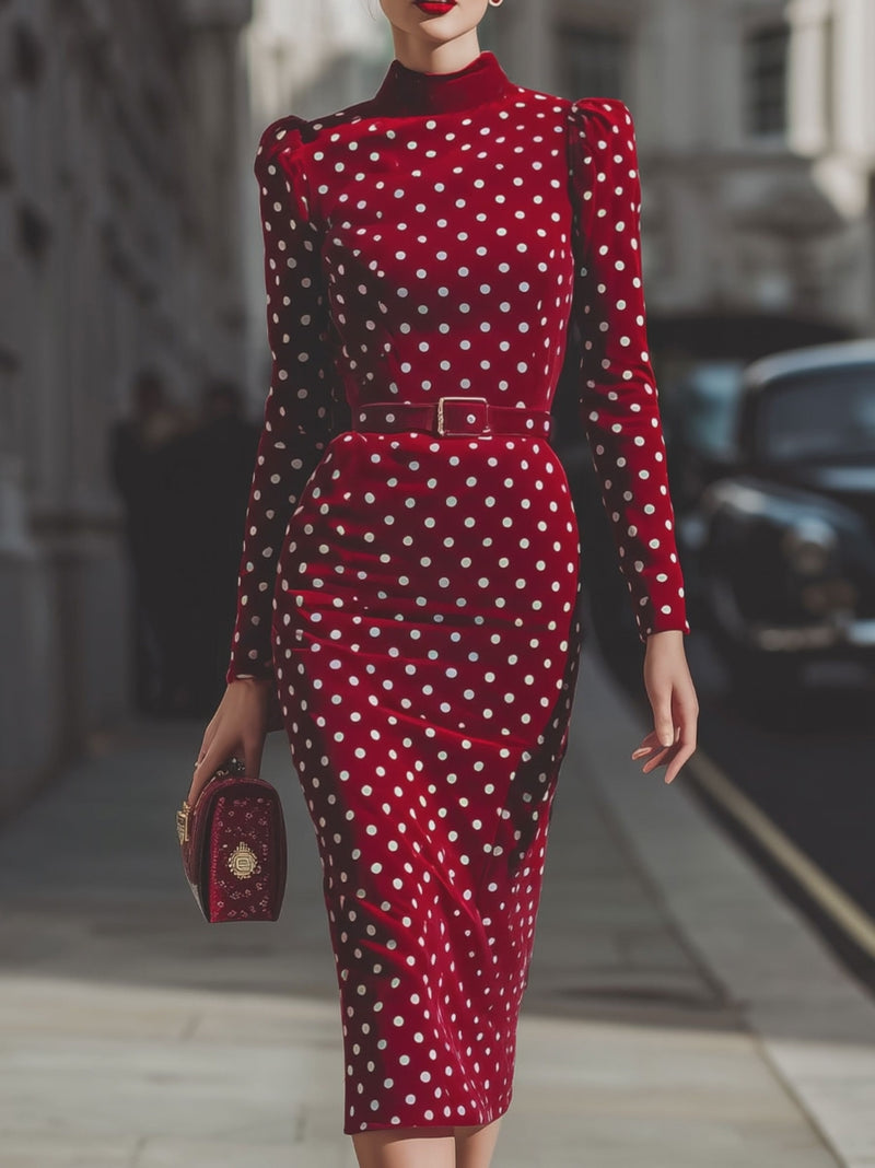Perfect for formal events or vintage-themed gatherings, this dress ensures you exude timeless elegance at all times. The premium velvet fabric offers a sumptuous feel, while the polka dot pattern and tailored silhouette evoke a sense of retro glamour. Style it with a bejeweled clutch and red lipstick for a truly refined, head-turning look that transitions seamlessly from day to night.