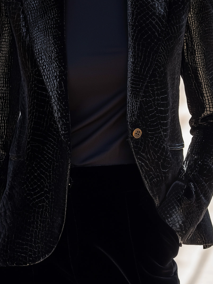Croc-Embossed Faux Leather Tailored Blazer