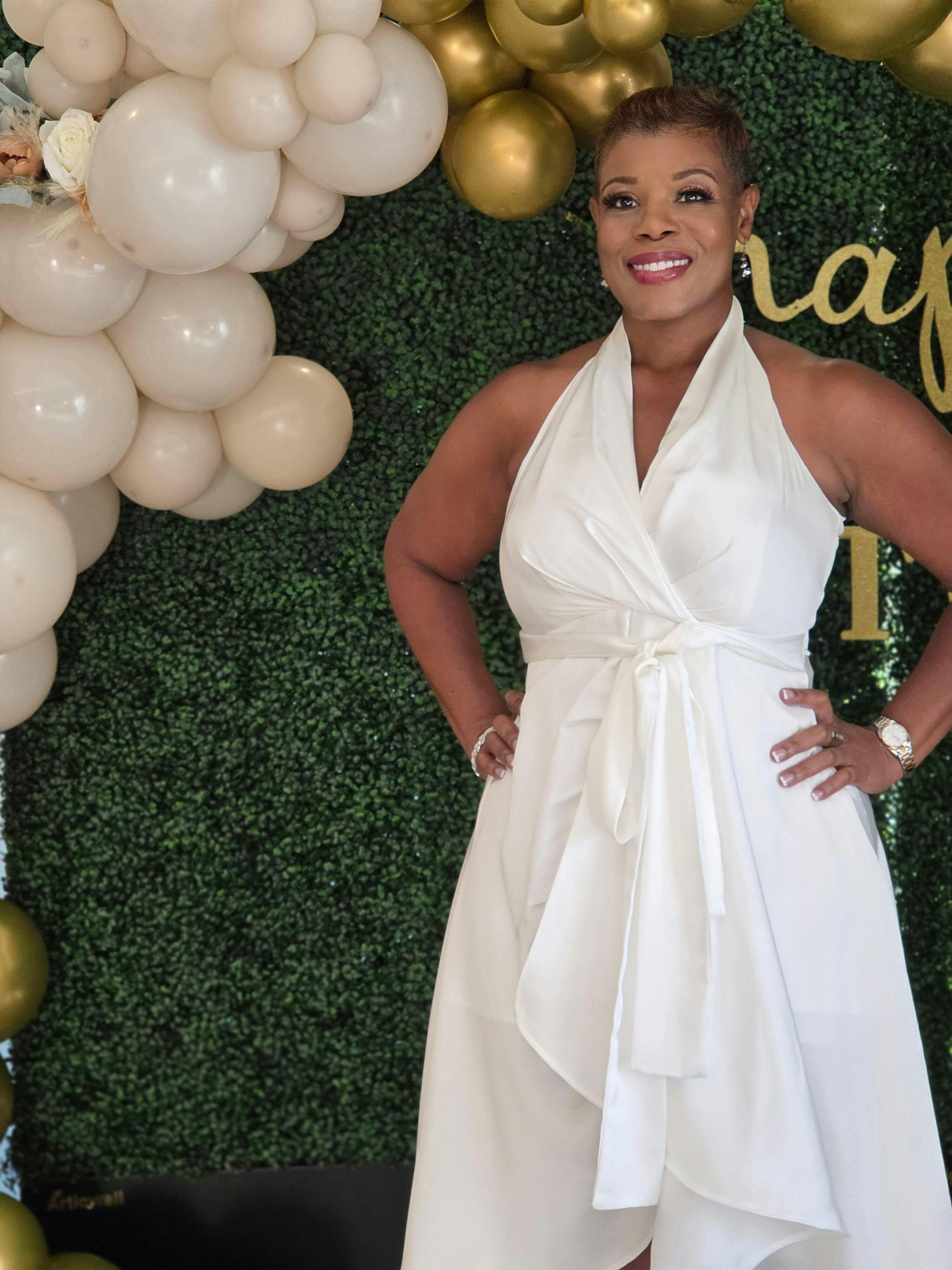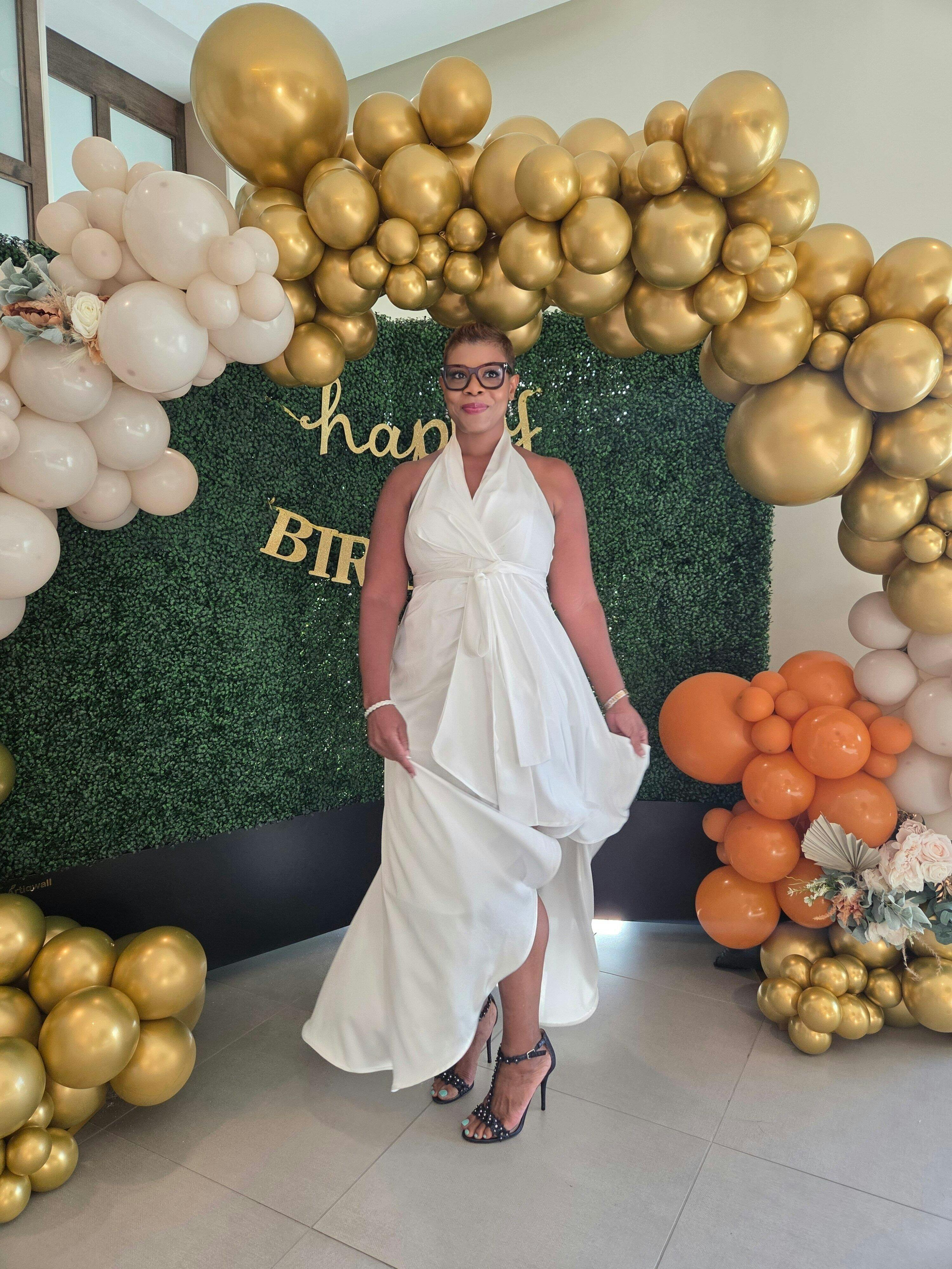The skirt flows into a dramatic high-low hemline trimmed with cascading ruffles that ripple with every step. The subtle front slit adds a modern edge while enhancing movement and allure. Whether you're attending a gala, cocktail soirée, or formal wedding, this gown ensures you exude confidence and grace.