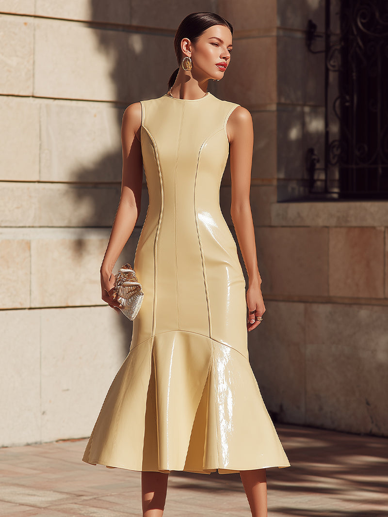 Sleeveless Sculpted Mermaid Midi Dress With Seam Detailing