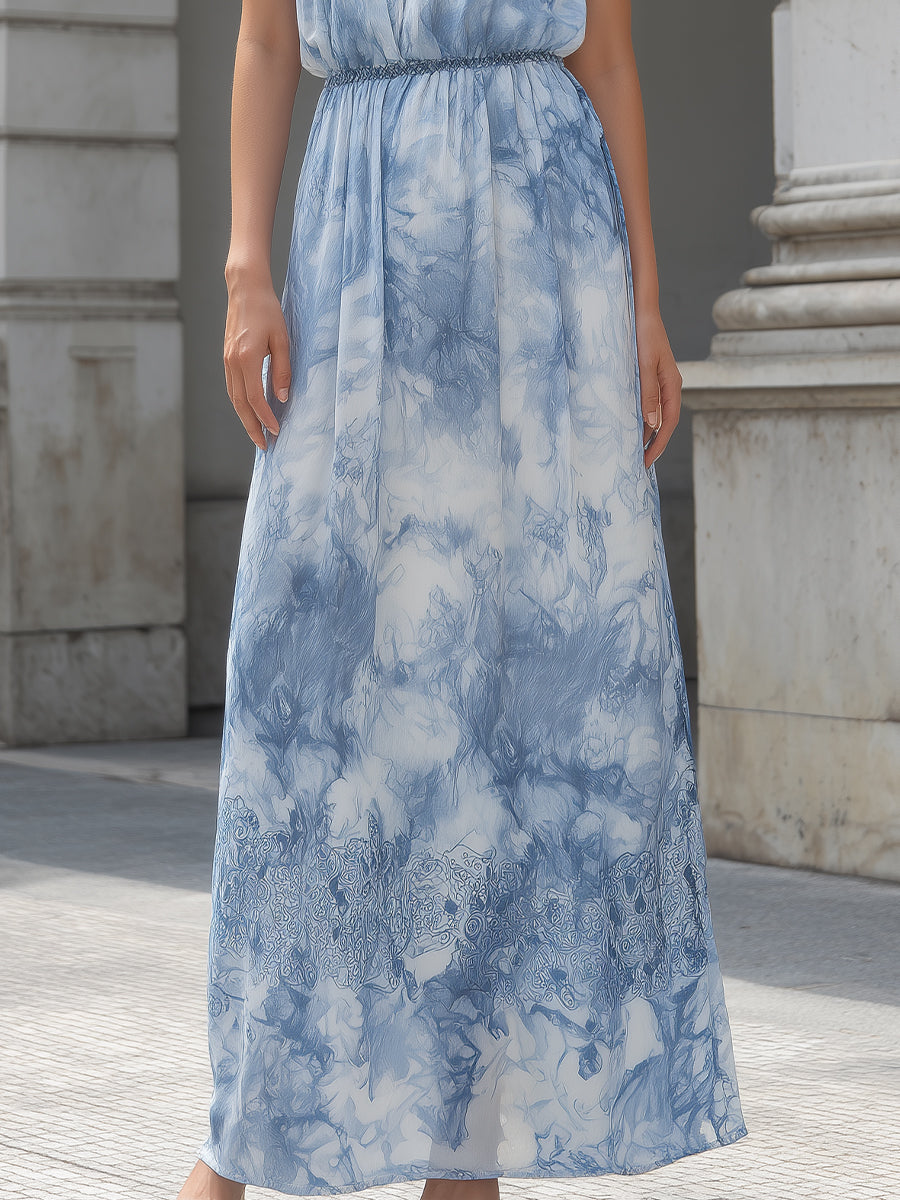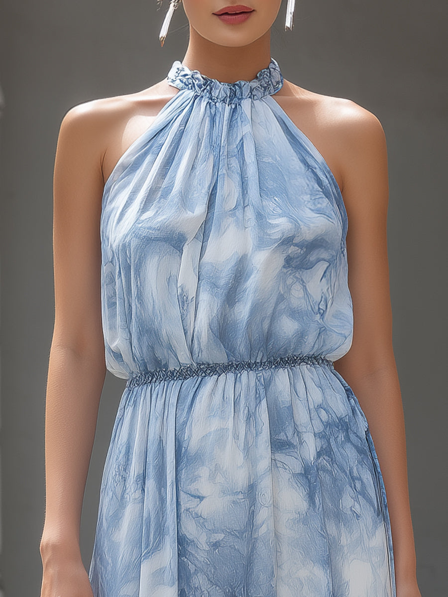 Step into effortless elegance with this stunning marble print halter maxi dress, designed to capture a sense of lightness and refined femininity. The soft, flowing fabric drapes beautifully over the body, creating a graceful silhouette that moves naturally with every step.