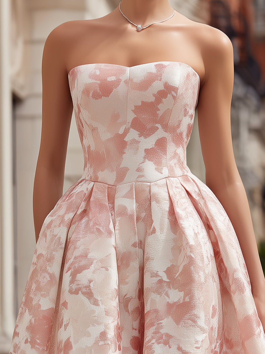 Strapless Floral Jacquard A-Line Midi Dress