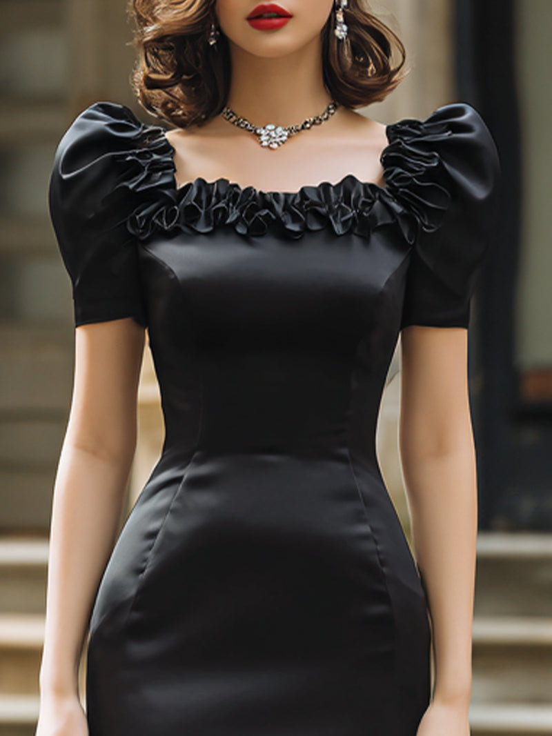 Square Neck Peplum Slit Maxi Dress
