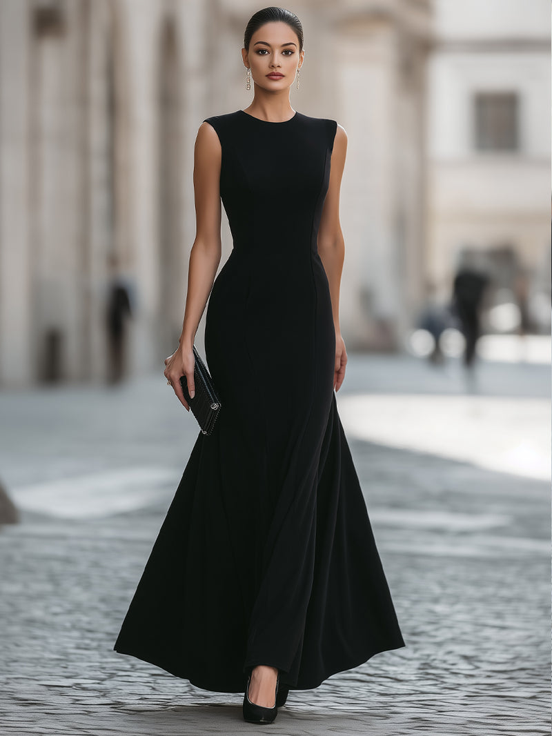 Ribbed Sleeveless Mermaid Hem Midi Dress