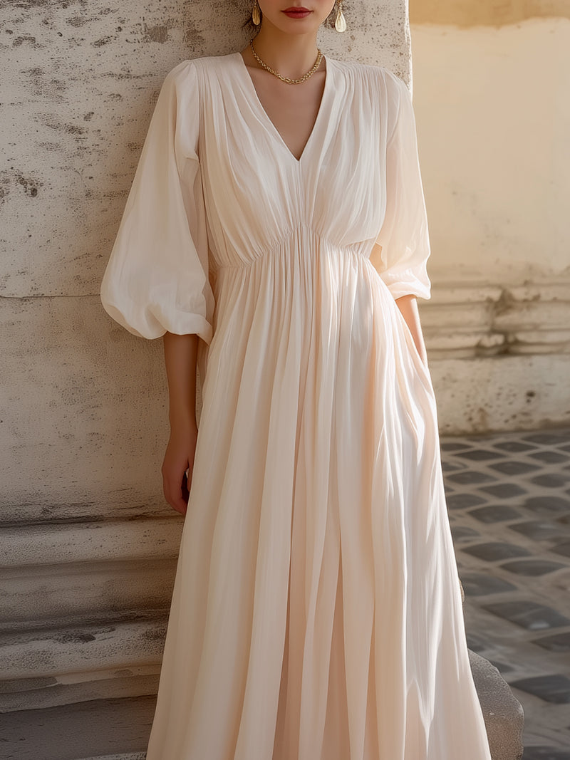 Sheer Flutter Sleeve V-Neck Tailored Maxi Dress