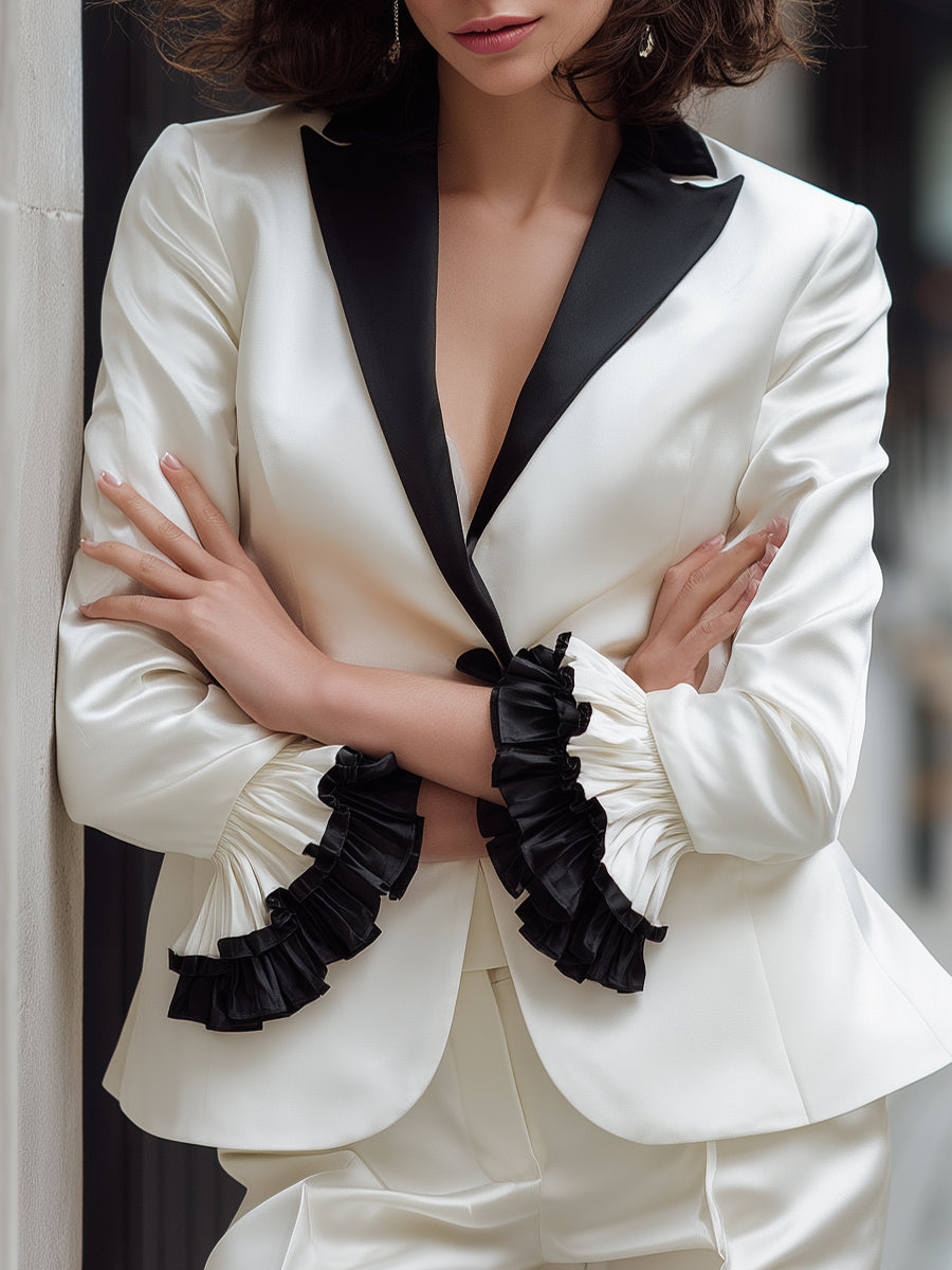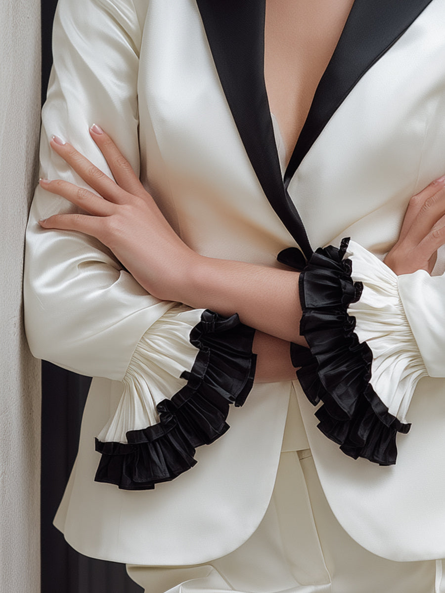 Contrast Lapel Tailored Blazer With Ruffled Cuffs