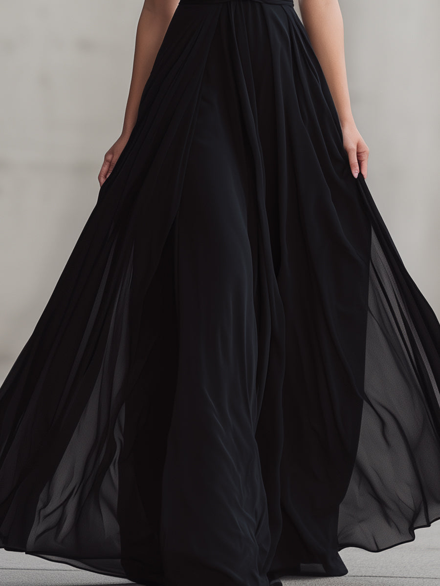 Ethereal Black Chiffon Spaghetti-Strap Evening Gown